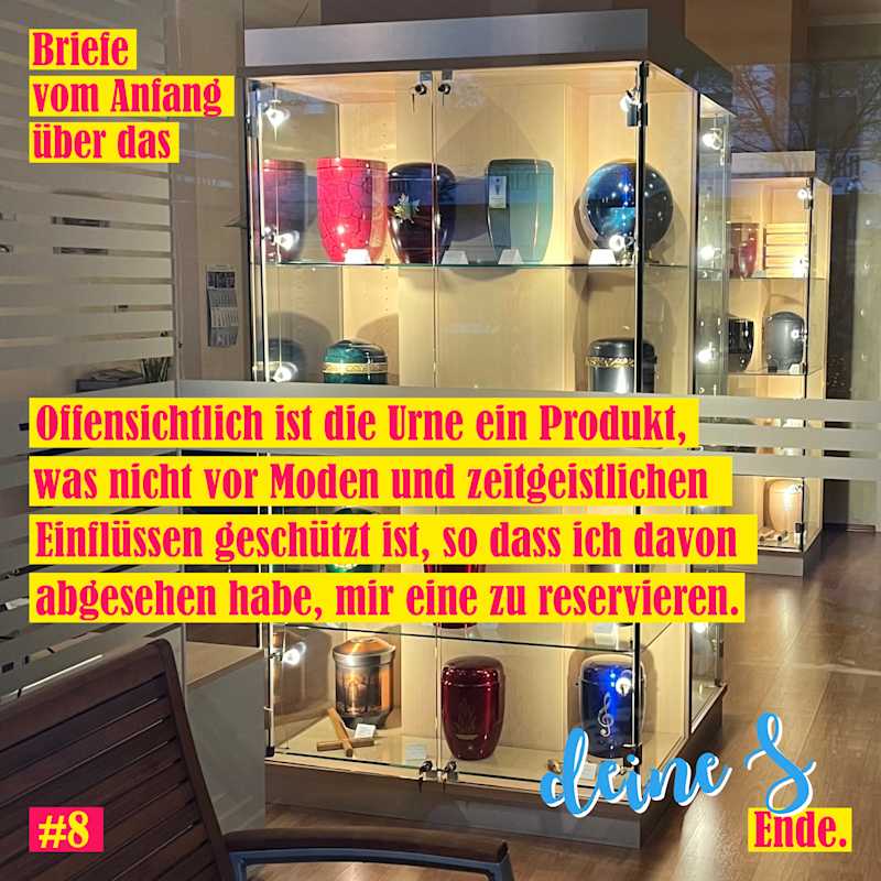 in der letzten Woche war ich bei einem Bestatter und habe mir verschiedene Urnenformen angesehen.