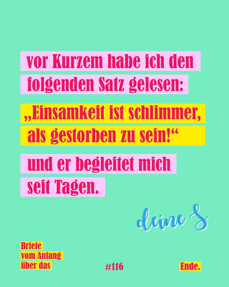 "Einsamkeit ist schlimmer, als gestorben zu sein!"