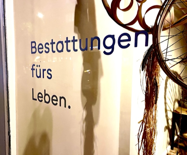 Sein Slogan ist „BESTATTUNGEN FÜRS LEBEN“. Doll, oder?