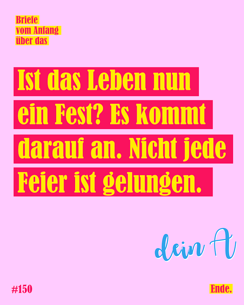 Liebe S., Ist das Leben nun ein Fest? Es kommt darauf an. Nicht jede Feier ist gelungen. Dein A.