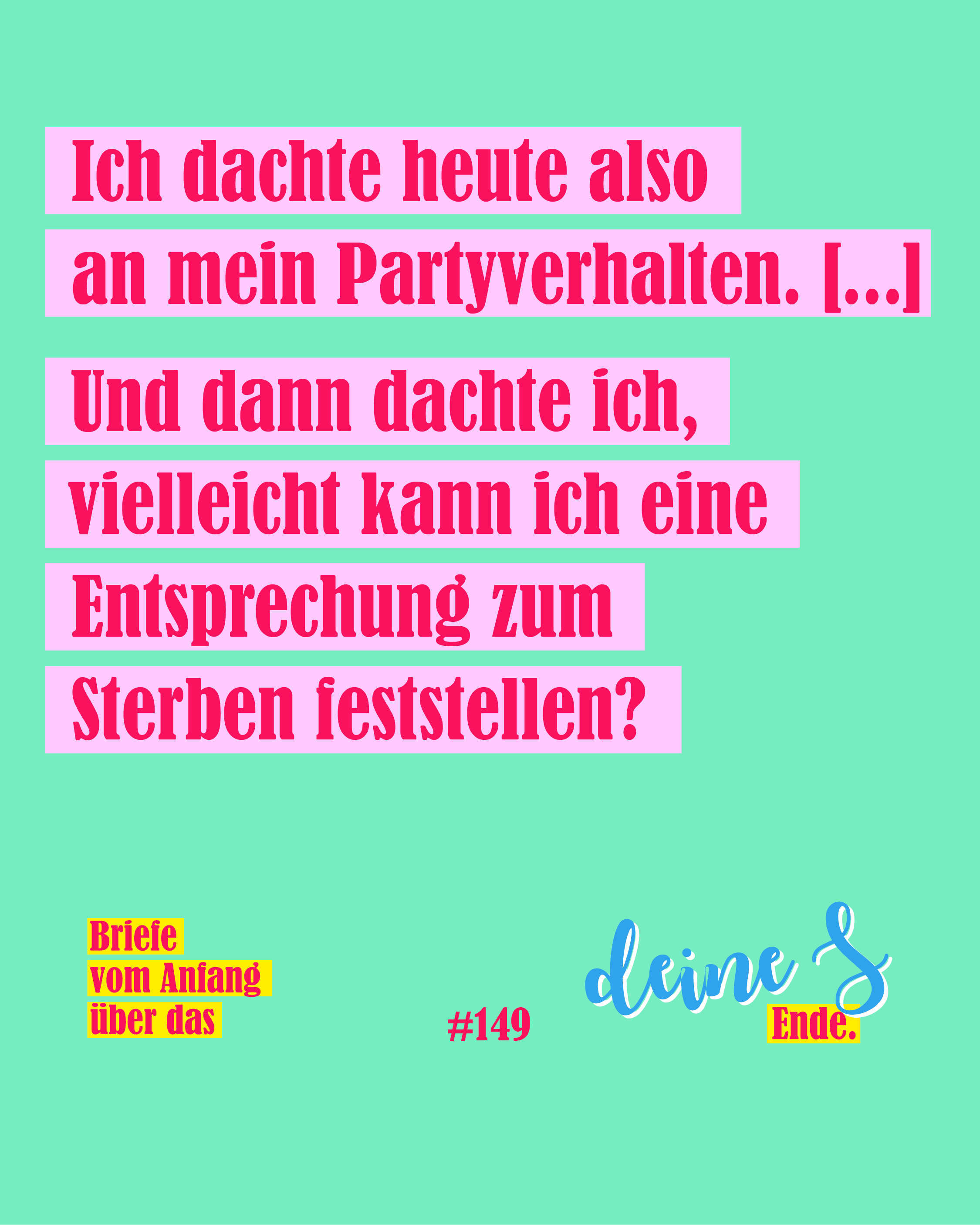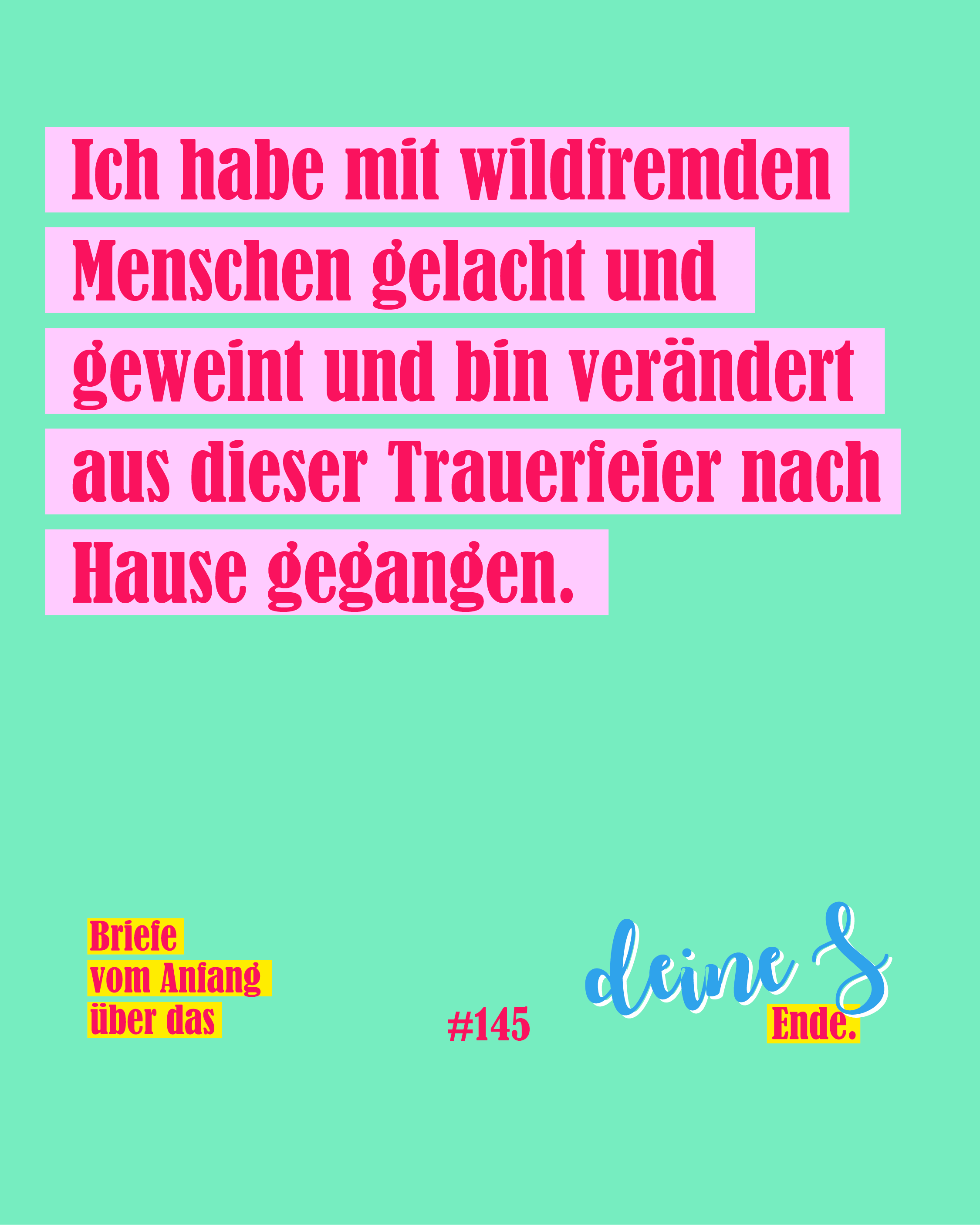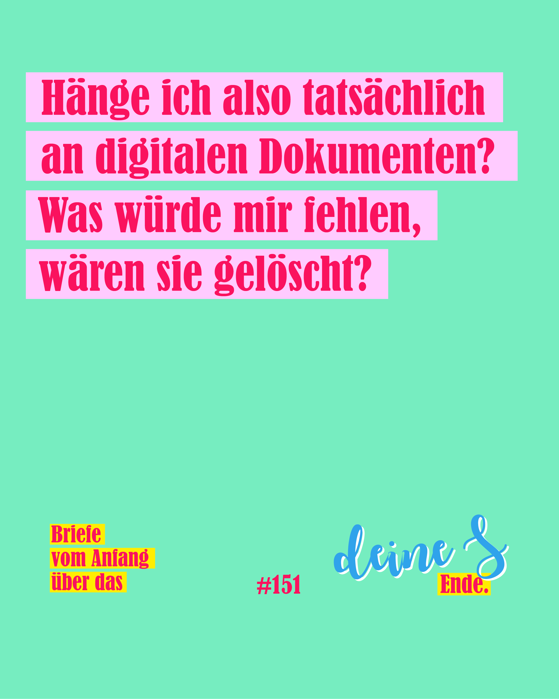 Die Briefe sollen Einblicke in den unterschiedlichen Umgang mit dem Tod und mit dem Sterben geben. Die beiden Schreibenden kennen sich seit der frühesten Jugend, haben ihre jeweiligen Lebenswege verfolgt und Freud und Leid oft geteilt. Sie haben Angehörige verloren, einen Bruder, die Mutter, nahe Freunde und sich auf den Beerdigungen in den Armen gelegen. Die beiden haben geschrieben und Fotos gesammelt. Nun soll der Briefwechsel aus der digitalen in die analoge Welt gebracht werden.