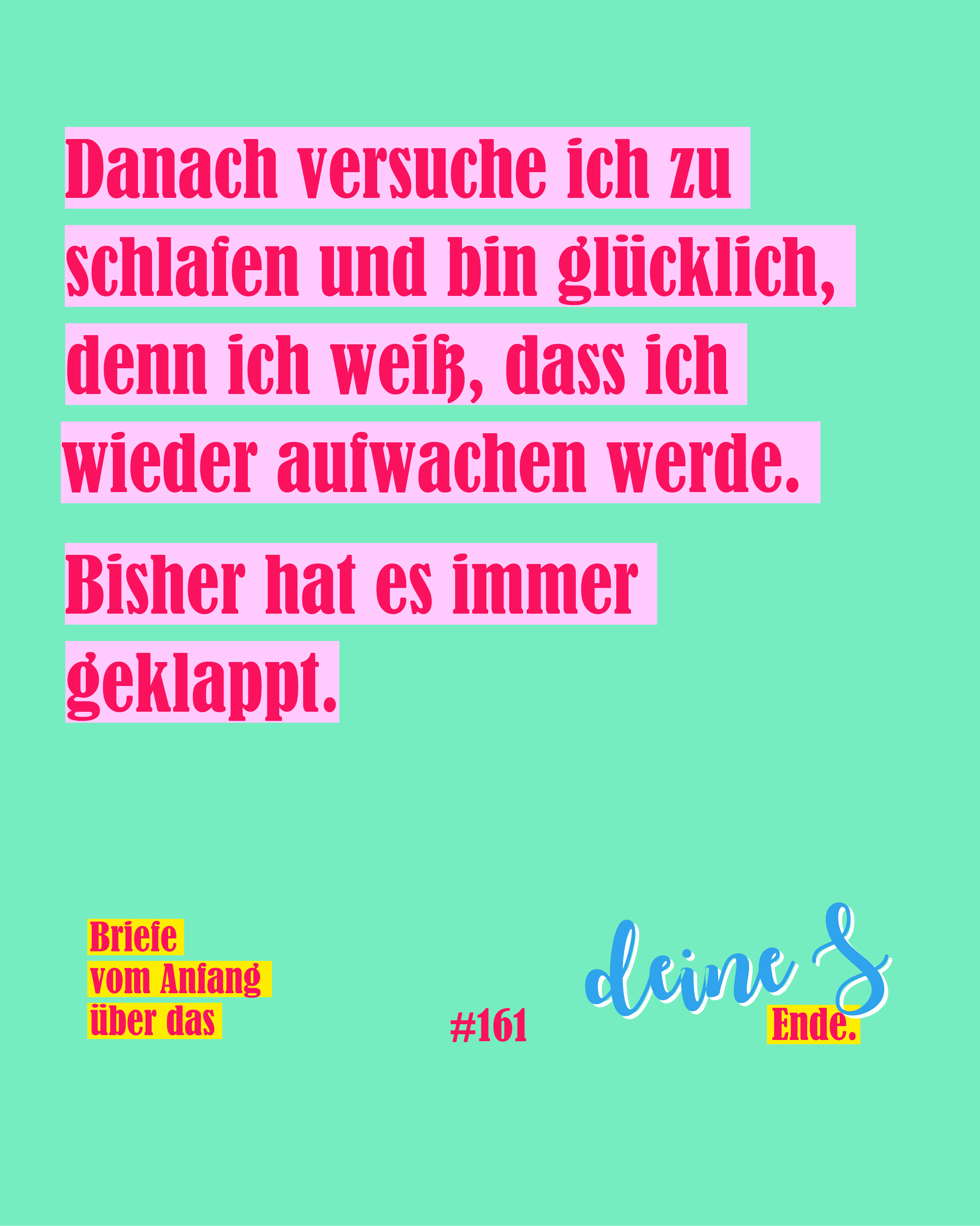 Herauskommen soll ein Lesebuch, ein Bilderbuch, eine Anregung, ein Angstnehmer-Buch, ein Kunstbuch, ein Buch, das keinem Genre zuzuordnen ist, und doch absolut Sinn macht. Geplante Gesamtlänge: ca. 100 Seiten